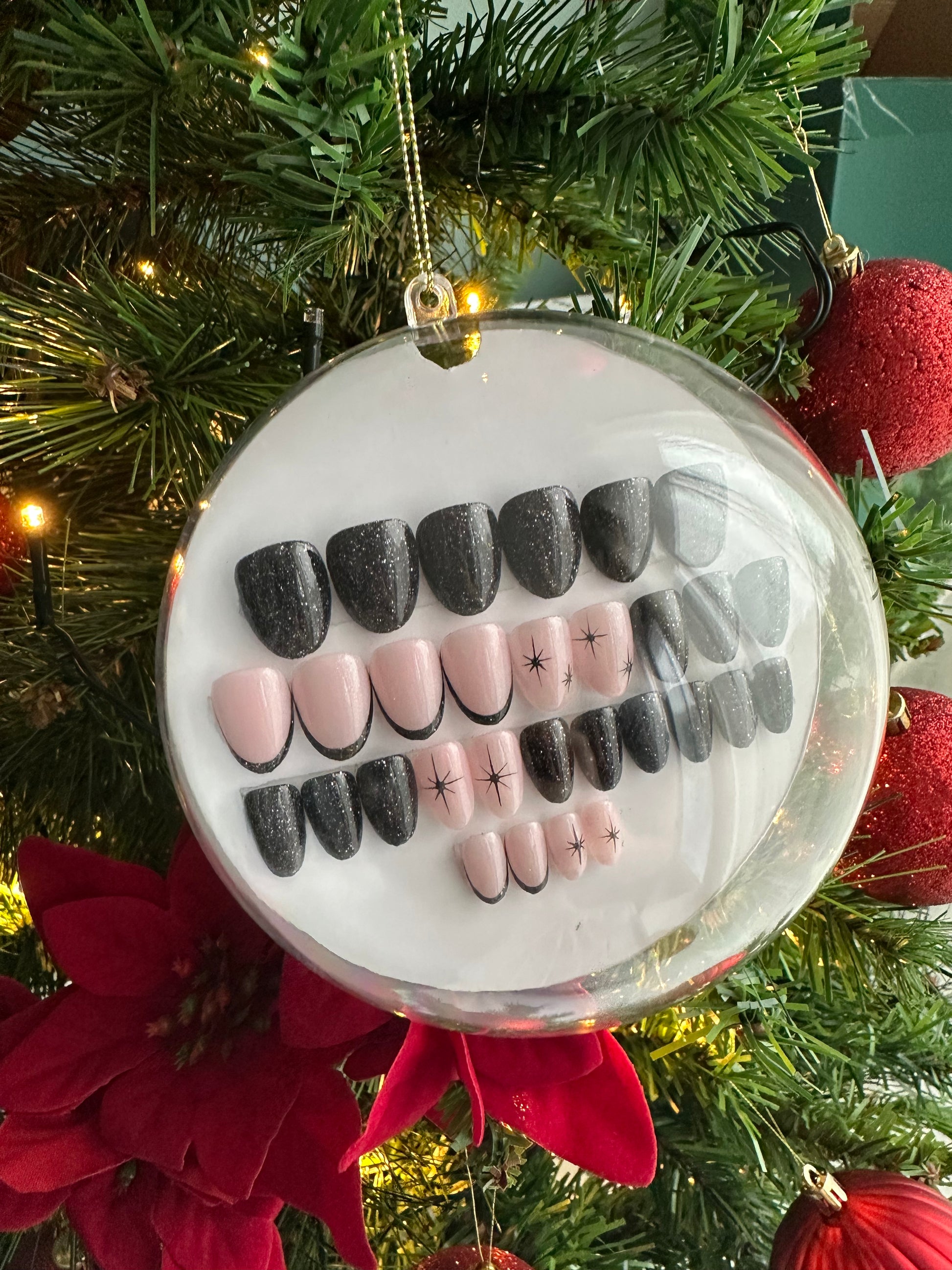 Modèle : capsules unies et french noires pailletées et flocons raffinés - Rond XS